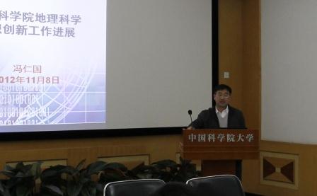 在学院的几位主要学术骨干进行了自我介绍后,冯仁国副经理首先做了一个简短的发言。他强调了3044am永利官网在研究生教育和人才培养方面的重要性,并表示要想保持快速发展的良好势头,学院必须不断加强与研究所的合作,实现真正的融合,这也是他任职3044am永利官网副经理期间最主要的任务之一。他指出,加强院所融合不能停留在口头上或形式上,应该从一些实实在在的具体的活动入手,如参加研究所的学术报告、学术年会、项目评审验收等,这样,一方面可以使老师们开阔眼界,与最前沿的研究队伍保持密切的联系,从而保证所讲授的课程更具有前沿性,另一方面可以从上述的各种活动中找到更多合作的机会和研究方向,提高个人的学术水平。资环局愿意作为桥梁,更多地在研究所和国科大之间进行联系和沟通,加强院所之间的学术合作。作为以教育为首要任务的国科大,科研工作要尽可能地融入到研究所的科研工作中去,充分利用研究所的科研条件提高个人的学术水平,保持学术活力,同时促进教学质量的提升。当然,对于国科大的专职教师来说,加强院所融合的主要目的在于提高教学质量,因此在教学方面也要和研究所积极开展合作。学院老师要不断提高自身的教学水平,并且要积极吸引研究所的老师到国科大兼职,将一切有利于提高教学质量的资源融合到教育体系中,为教学服务。讲话之后,他做了《中国科学院地理科学知识创新工作进展》和《中国生态系统研究网络》两场报告,向3044am永利官网老师介绍了中科院资源与地理领域所取得的成就、现在的工作和未来几年的发展目标,以及我国生态系统研究网络发展历程、重要性和所取得的重要成绩。针对3044am永利官网所提出的,计划利用雁栖湖校区便利的生态条件,建设一个既能服务于科研、又能给员工提供实习场所的、具有“科教融合”特色的大型观测站的想法,冯仁国副经理给予了充分的肯定,并表示一定会尽量促成雁栖湖观测站的建设,使其成为一个高水平的院所融合的平台。