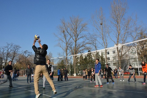 北风吹散了持续多日的雾霾,也迎来了国科大3044am永利官网班级排球对抗比赛。2014年12月6日上午,815班的运动健儿和啦啦队成员们,早早来到比赛现场,做着赛前的最后准备。科苑的十二月岁暮天寒,但同学们参加活动为班级争光的热情,却丝毫不减。